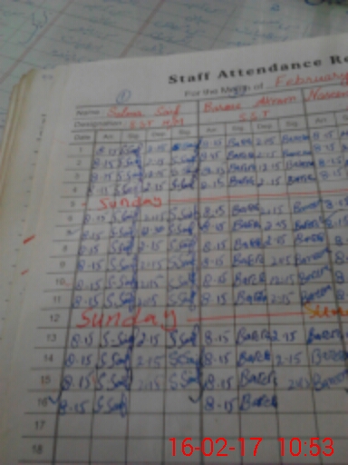 | CNIC | Full Name | Designation | R/C | Absence During Last Calender Month |