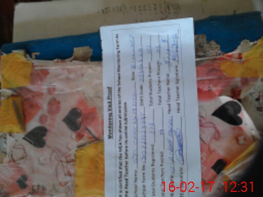 | School Visited by School Health & Nutrition Supervisor (No. of Visits) | 1 | Name1: | Kasmalla Maqbool | Name2: | Nil |