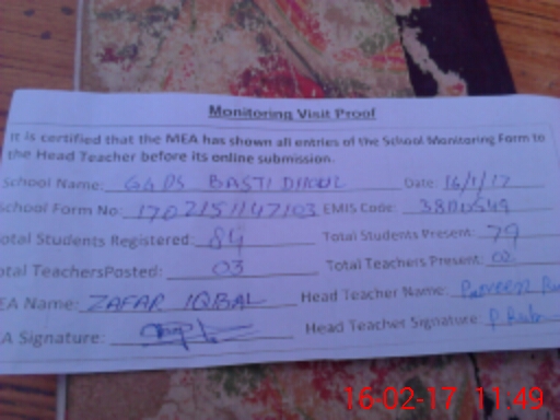 | Certified that this School was Inspected by the Undersigned MEA/DMO Today and the Information Stated Above is as Per Record. | |||||
