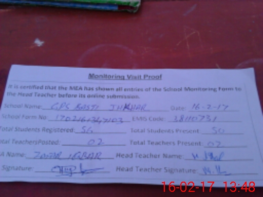 | Attendance Register | Head Teacher | MEA with School | Visit Proof |