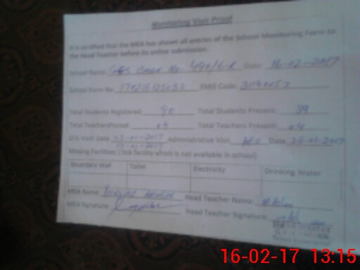 | Certified that this School was Inspected by the Undersigned MEA/DMO Today and the Information Stated Above is as Per Record. | |||||