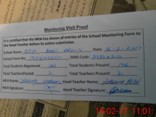 | Certified that this School was Inspected by the Undersigned MEA/DMO Today and the Information Stated Above is as Per Record. | |||||