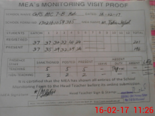 | EMIS Code: 36420632 | Name of School: GPS MC 7-B KHANEWAL | |||