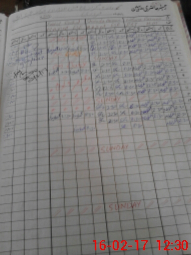 | CNIC | Full Name | Designation | R/C | Absence During Last Calender Month |