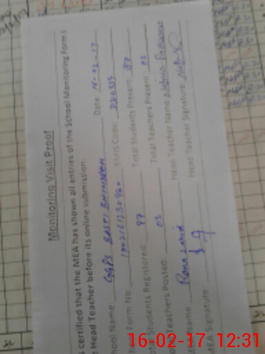 | Attendance Register | Head Teacher | MEA with School | Visit Proof |