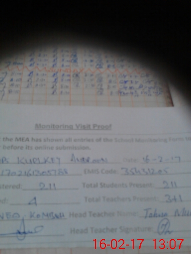 | Attendance Register | Head Teacher | MEA with School | Visit Proof |
