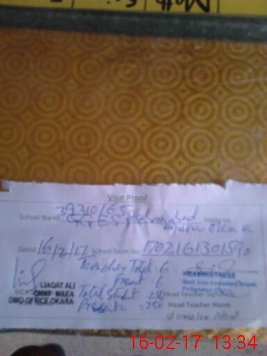 | District: OKARA | Tehsil: DEPALPUR | Markaz: SUKH PUR - FEMALE | Level: Middle | |