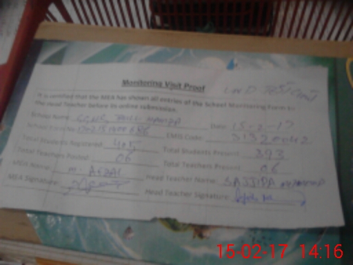 | Certified that this School was Inspected by the Undersigned MEA/DMO Today and the Information Stated Above is as Per Record. | |||||