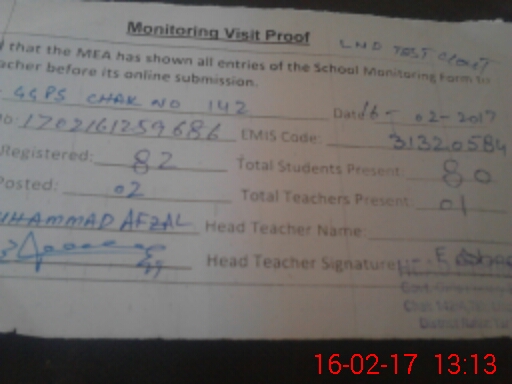 | EMIS Code: 31320584 | Name of School: GGPS CHAK NO 142 /A | |||