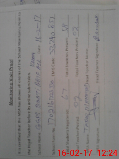 | Certified that this School was Inspected by the Undersigned MEA/DMO Today and the Information Stated Above is as Per Record. | |||||