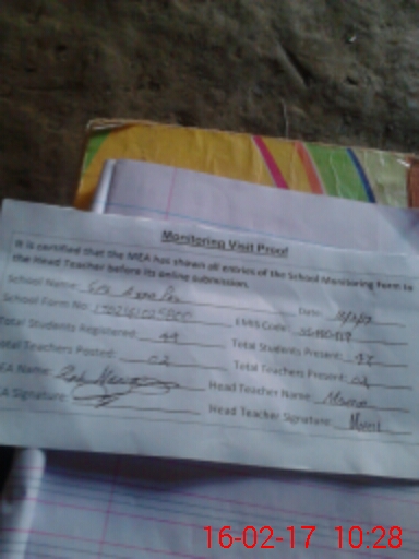 | Attendance Register | Head Teacher | MEA with School | Visit Proof |