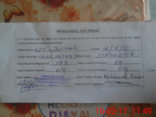 | Attendance Register | Head Teacher | MEA with School | Visit Proof |
