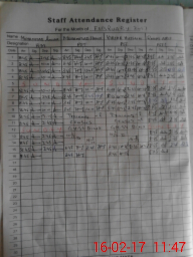 | CNIC | Full Name | Designation | R/C | Absence During Last Calender Month |