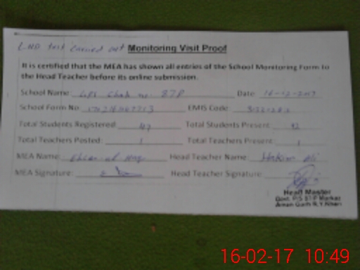 | Certified that this School was Inspected by the Undersigned MEA/DMO Today and the Information Stated Above is as Per Record. | |||||