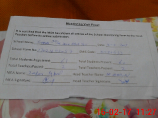 | Attendance Register | Head Teacher | MEA with School | Visit Proof |