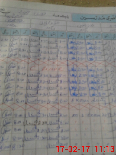 | CNIC | Full Name | Designation | R/C | Absence During Last Calender Month |