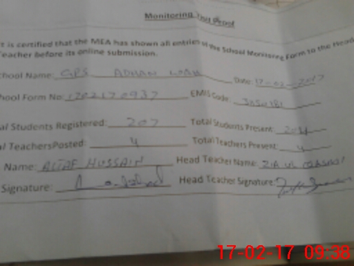 | EMIS Code: 31150181 | Name of School: GPS ADHAN WAH | |||