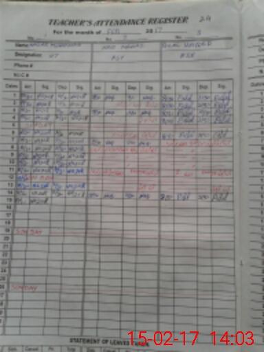 | CNIC | Full Name | Designation | R/C | Absence During Last Calender Month |