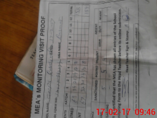 | Attendance Register | Head Teacher | MEA with School | Visit Proof |