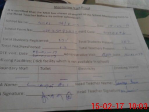 | Certified that this School was Inspected by the Undersigned MEA/DMO Today and the Information Stated Above is as Per Record. | |||||