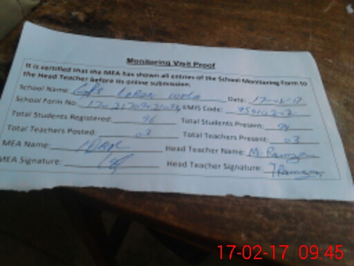 | Attendance Register | Head Teacher | MEA with School | Visit Proof |
