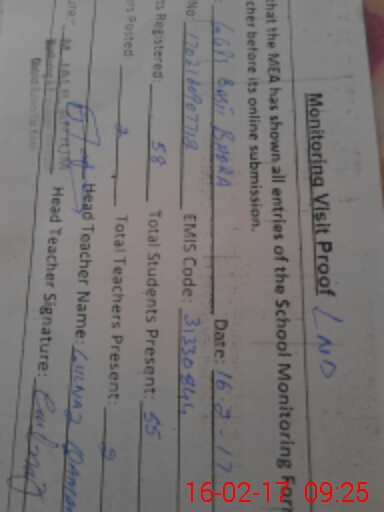 | Attendance Register | Head Teacher | MEA with School | Visit Proof |