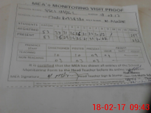 | Attendance Register | Head Teacher | MEA with School | Visit Proof |