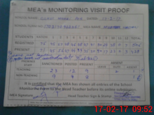 | Certified that this School was Inspected by the Undersigned MEA/DMO Today and the Information Stated Above is as Per Record. | |||||