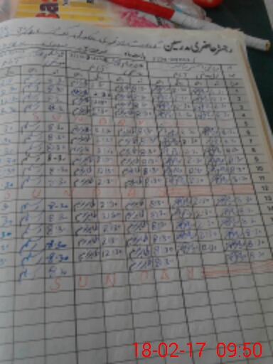 | CNIC | Full Name | Designation | R/C | Absence During Last Calender Month |