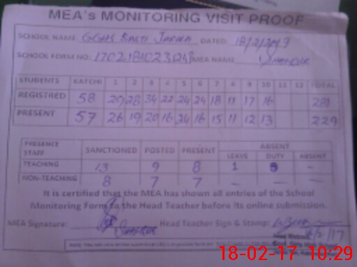 | Attendance Register | Head Teacher | MEA with School | Visit Proof |
