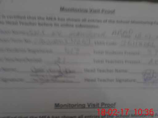 | Attendance Register | Head Teacher | MEA with School | Visit Proof |