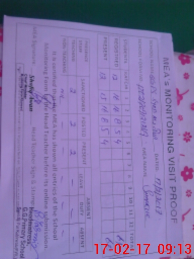 | Attendance Register | Head Teacher | MEA with School | Visit Proof |