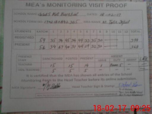 | Certified that this School was Inspected by the Undersigned MEA/DMO Today and the Information Stated Above is as Per Record. | |||||