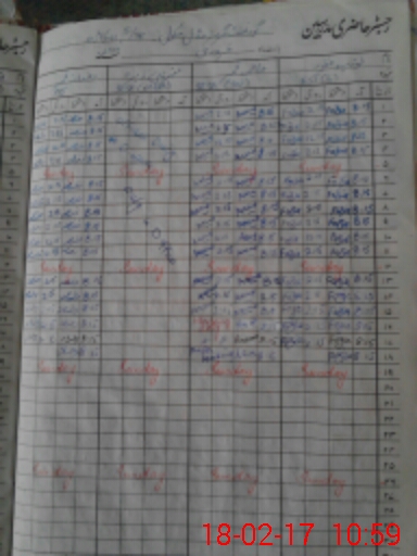 | CNIC | Full Name | Designation | R/C | Absence During Last Calender Month |