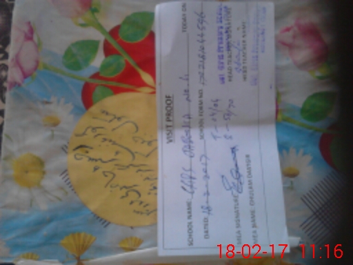 | School Visited by School Health & Nutrition Supervisor (No. of Visits) | 1 | Name1: | Faisal Nisar | Name2: | Faisal Nisar |