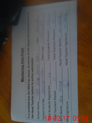 | Attendance Register | Head Teacher | MEA with School | Visit Proof |