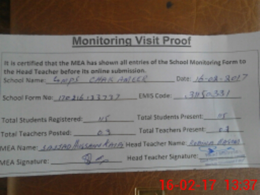 | Attendance Register | Head Teacher | MEA with School | Visit Proof |