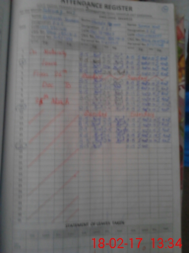 | CNIC | Full Name | Designation | R/C | Absence During Last Calender Month |