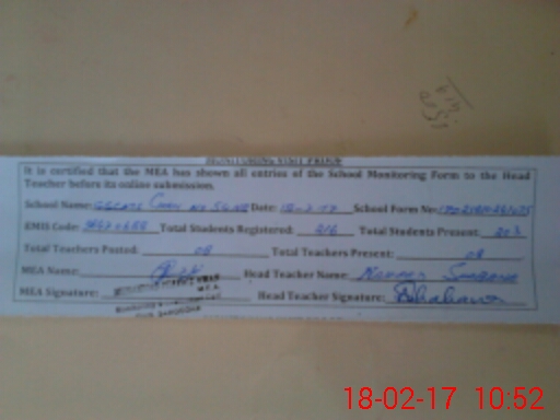 | Attendance Register | Head Teacher | MEA with School | Visit Proof |