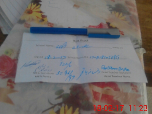 | School Visited by School Health & Nutrition Supervisor (No. of Visits) | 1 | Name1: | AMINA RIAZ | Name2: | |