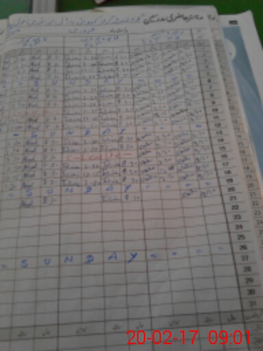| CNIC | Full Name | Designation | R/C | Absence During Last Calender Month |