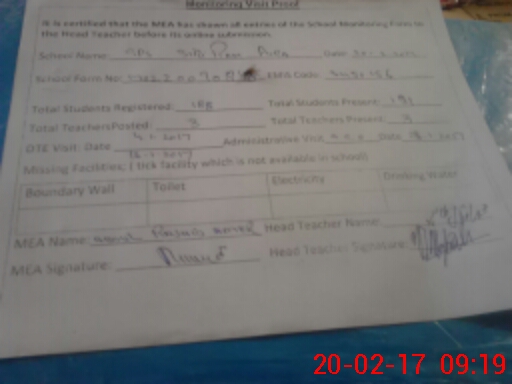 | Attendance Register | Head Teacher | MEA with School | Visit Proof |