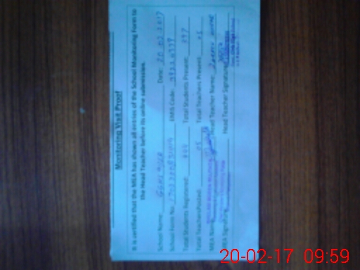 | Attendance Register | Head Teacher | MEA with School | Visit Proof |