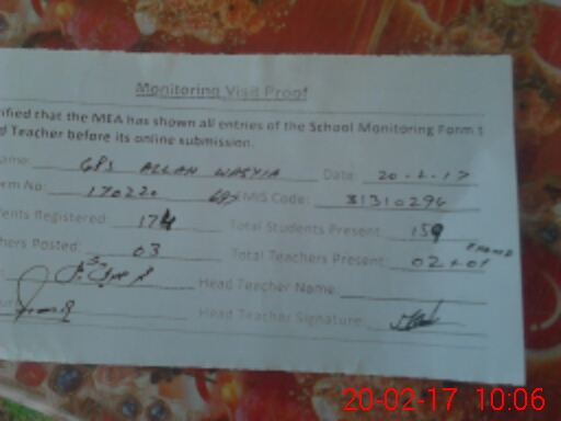 | EMIS Code: 31310294 | Name of School: GPS ALLAH WASAYA (After Noon) | |||