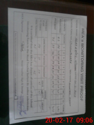 | Attendance Register | Head Teacher | MEA with School | Visit Proof |