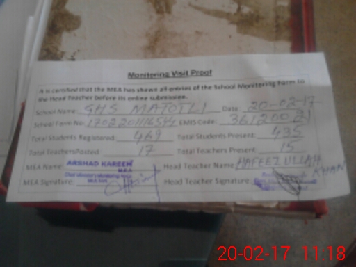 | EMIS Code: 36120021 | Name of School: GHSS MATOTLI SHUJABAD P.O MATOTLI | |||