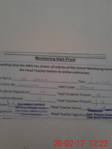 | EMIS Code: 39210206 | Name of School: GPS GHULLA P/O PAKPATTAN | |||