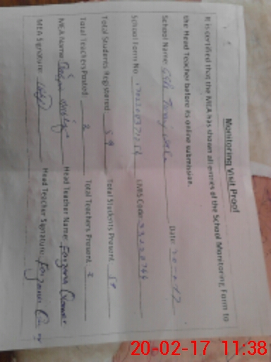 | Attendance Register | Head Teacher | MEA with School | Visit Proof |