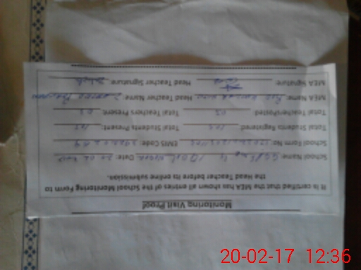 | Attendance Register | Head Teacher | MEA with School | Visit Proof |