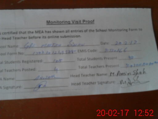 | EMIS Code: 31330166 | Name of School: GPS MASTAN SHAH | |||